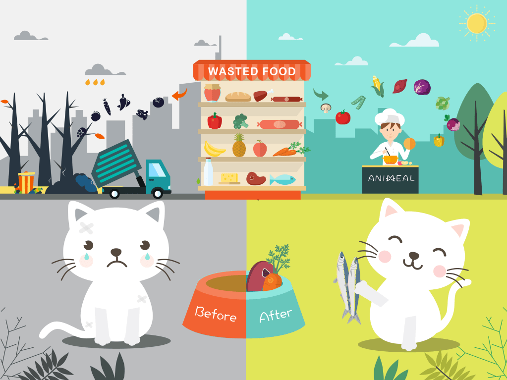 Simply choose your pet’s menu and quantity on the Animeal app, and we’ll deliver it to your door or you can find us at your nearest supermarket. If you have food near its expiration date, don’t toss it! We’ll collect it, check it with our AI software, and turn it into pet food.
