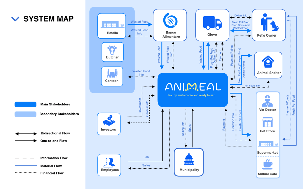 Animeal sources its raw materials from a diverse range of partners, including local retailers such as greengrocers and butchers, large supermarkets, private households, and untouched food from canteens. The company has established a strong partnership with Banco Alimentare, which collects food surpluses from the retail sector and redistributes them to food banks—both for humans and pets. In addition, Animeal collaborates with Glovo, an on-demand delivery service, to ensure quick and efficient food collection and delivery.