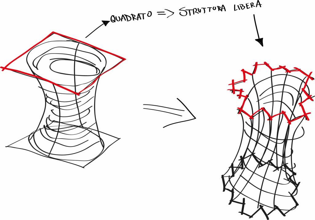 The initial design concept aimed to restyle Marcel Wanders’ Knotted Chair. Over time, however, the idea evolved, driven by an interest in a revolutionary new material recently discovered: graphene. What captured attention was a specific configuration of the material’s structure when imperfections occur in the atomic lattice. In this case, the structure forms hexagons and is referred to as “saddle-shaped.” Graphene atoms naturally arrange themselves into hexagonal patterns, where the sides form 120° angles, creating a perfectly flat, two-dimensional structure. However, when imperfections are introduced, such as pentagon-shaped atoms, the structure deforms.